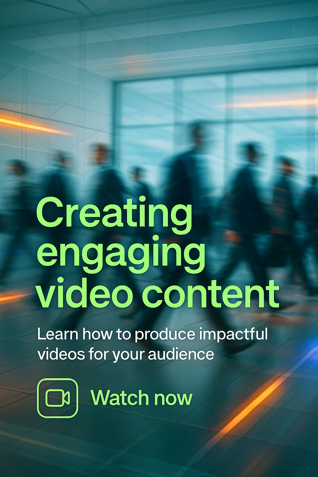 Promotional graphic designed to engage audiences in video production, featuring a modern and sleek design with vibrant colors and dynamic movement elements.
