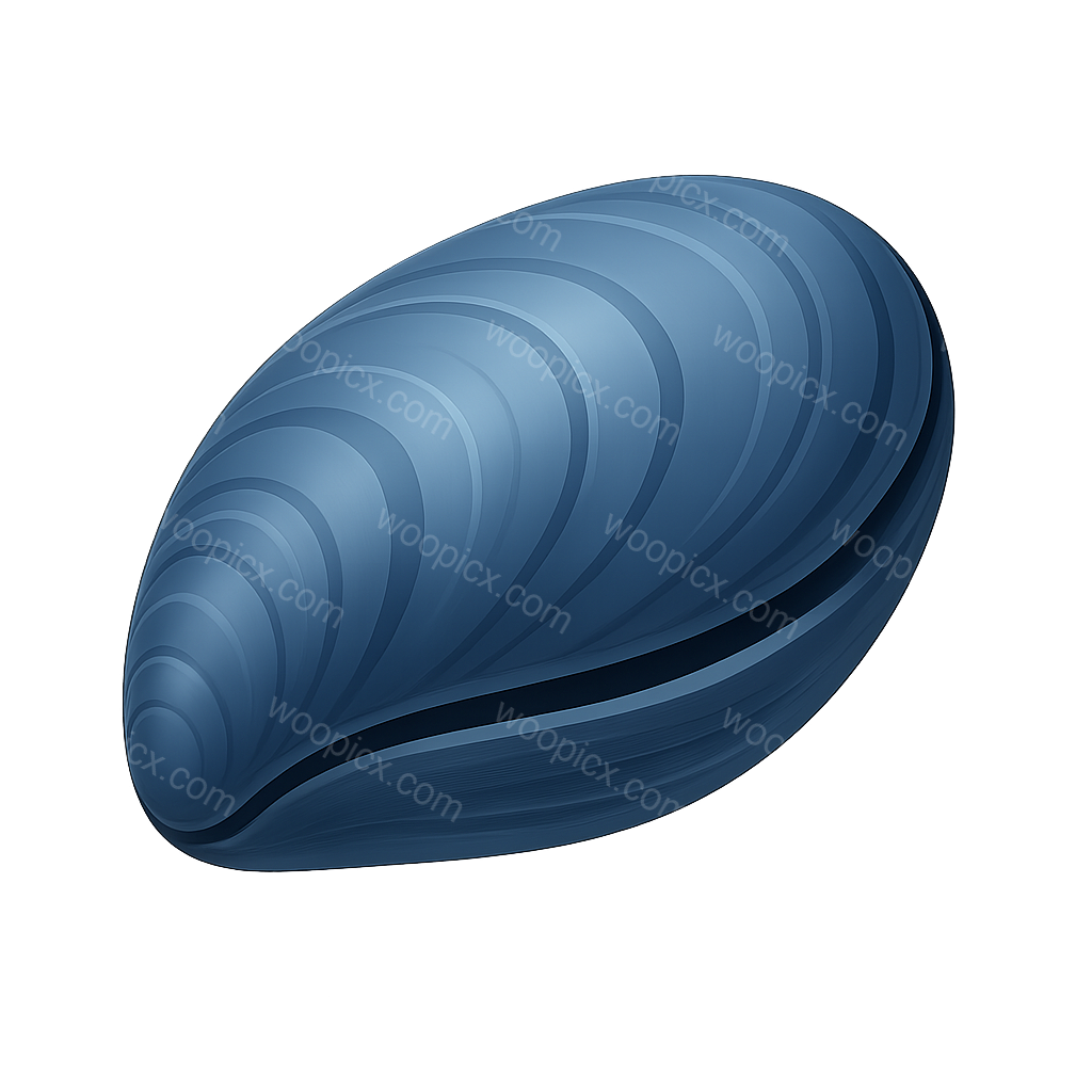 /Premium/Collection: /by davooda/Type: PNG/A beautifully rendered 3D mussel shell icon, showcasing a blue hue with smooth, curved lines. The design features a three-quarter view and a transparent background, emphasizing its volumetric qualities.