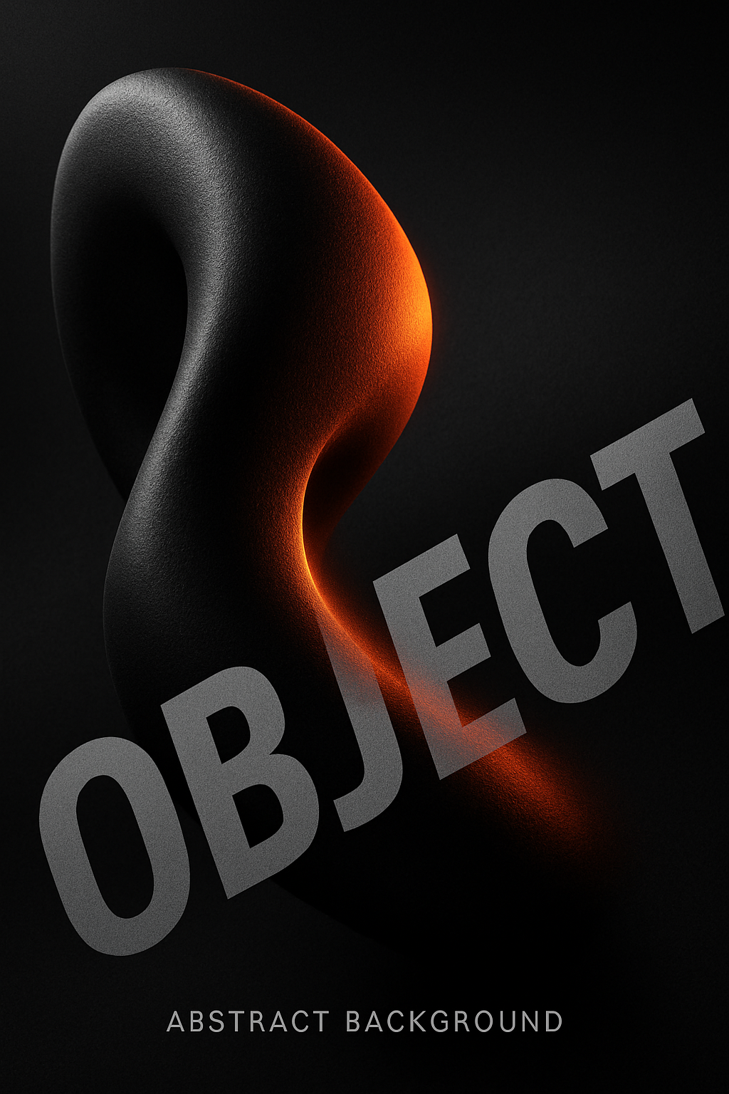 /Collection: /by davooda/Type: PNG/This image features an abstract black gradient background with a hyper-realistic 3D render. A glowing, textured object overlaps bold typography, creating a dynamic composition.