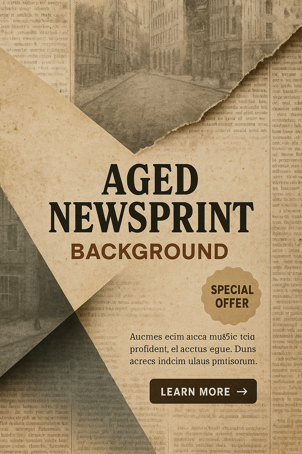 /Collection: /by davooda/Type: PNG/This image features a layered collage of aged newspaper textures, showcasing a special offer. The design includes a prominent title, a contrasting subtitle, and a call-to-action button, all set against a textured background.