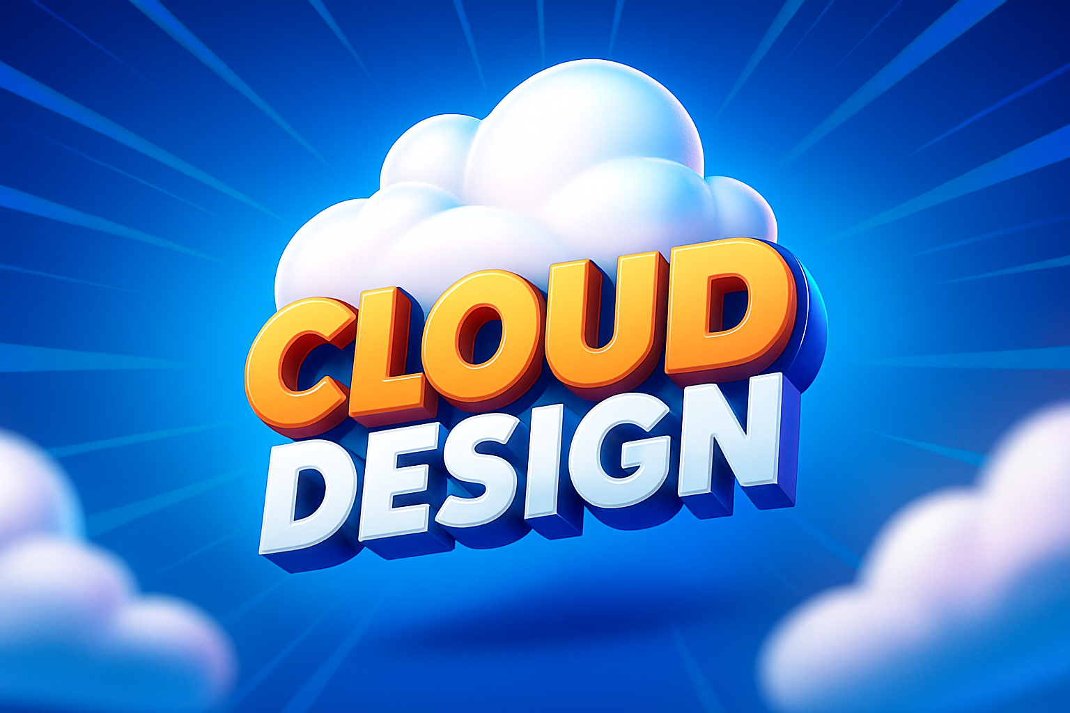 /Collection: /by davooda/Type: PNG/A visually engaging cloud design featuring bold, 3D typography. The background transitions from a smooth gradient to a vibrant blue, creating a dynamic atmosphere with rays emanating from the center.