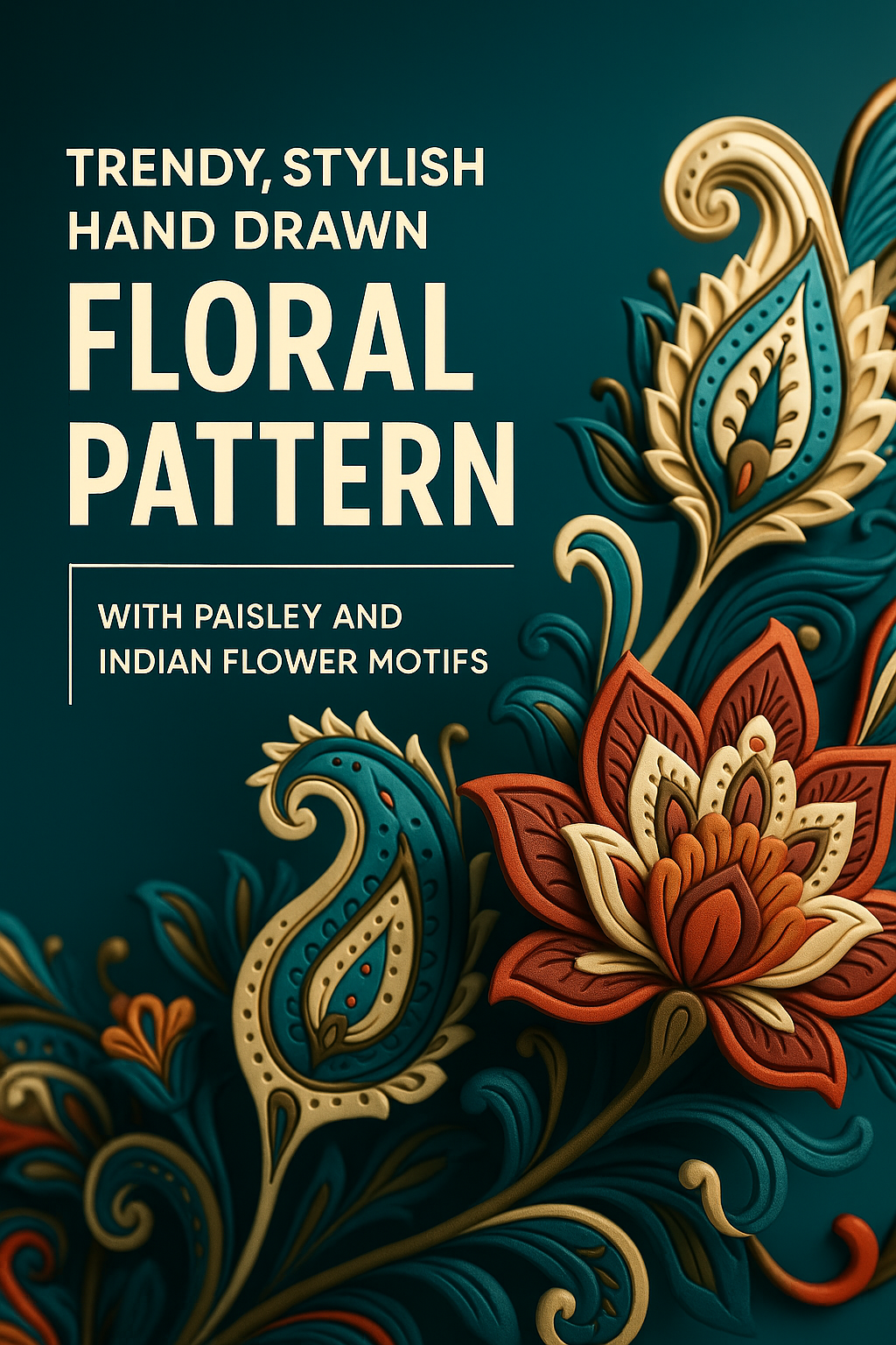 Trendy Stylish Hand Drawn Floral Pattern with Paisley Motifs