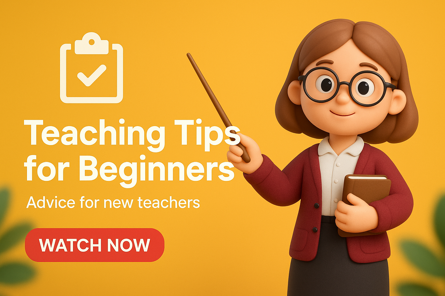 /Collection: /by davooda/Type: PNG/Colorful 3D character illustration aimed at new teachers, featuring a friendly figure holding a pointer and a notebook. Suitable for educational content promotion.