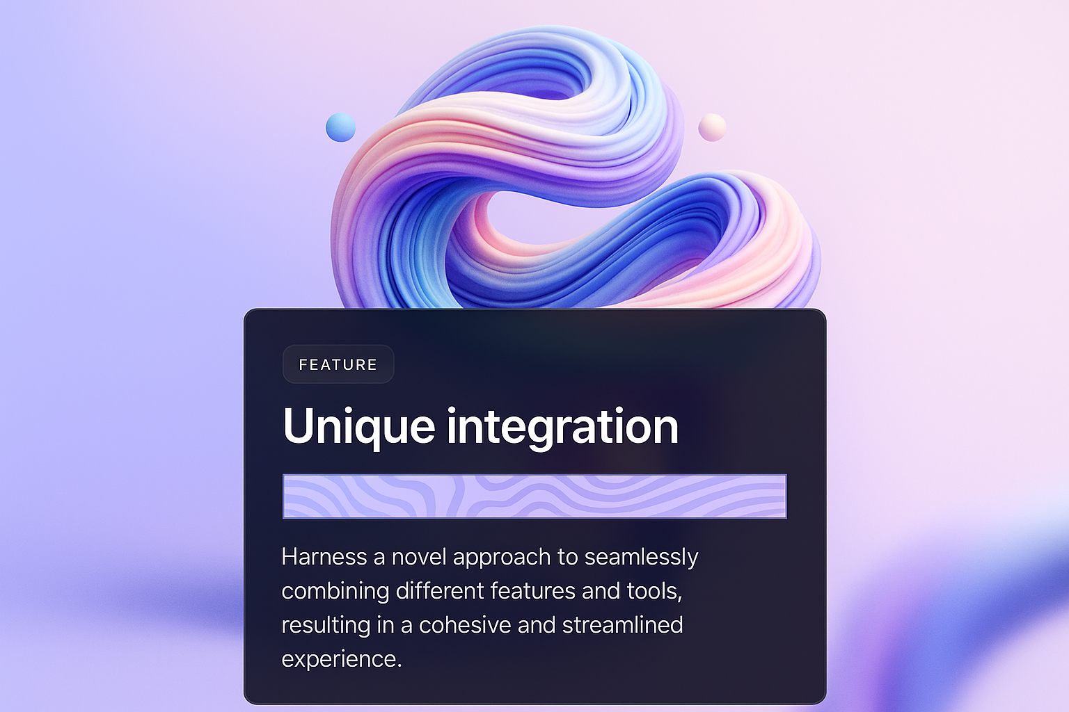 /Collection: /by davooda/Type: PNG/An abstract 3D illustration featuring colorful twisted shapes in motion against a soft pastel gradient background. Integrated text block highlights the unique feature integration.