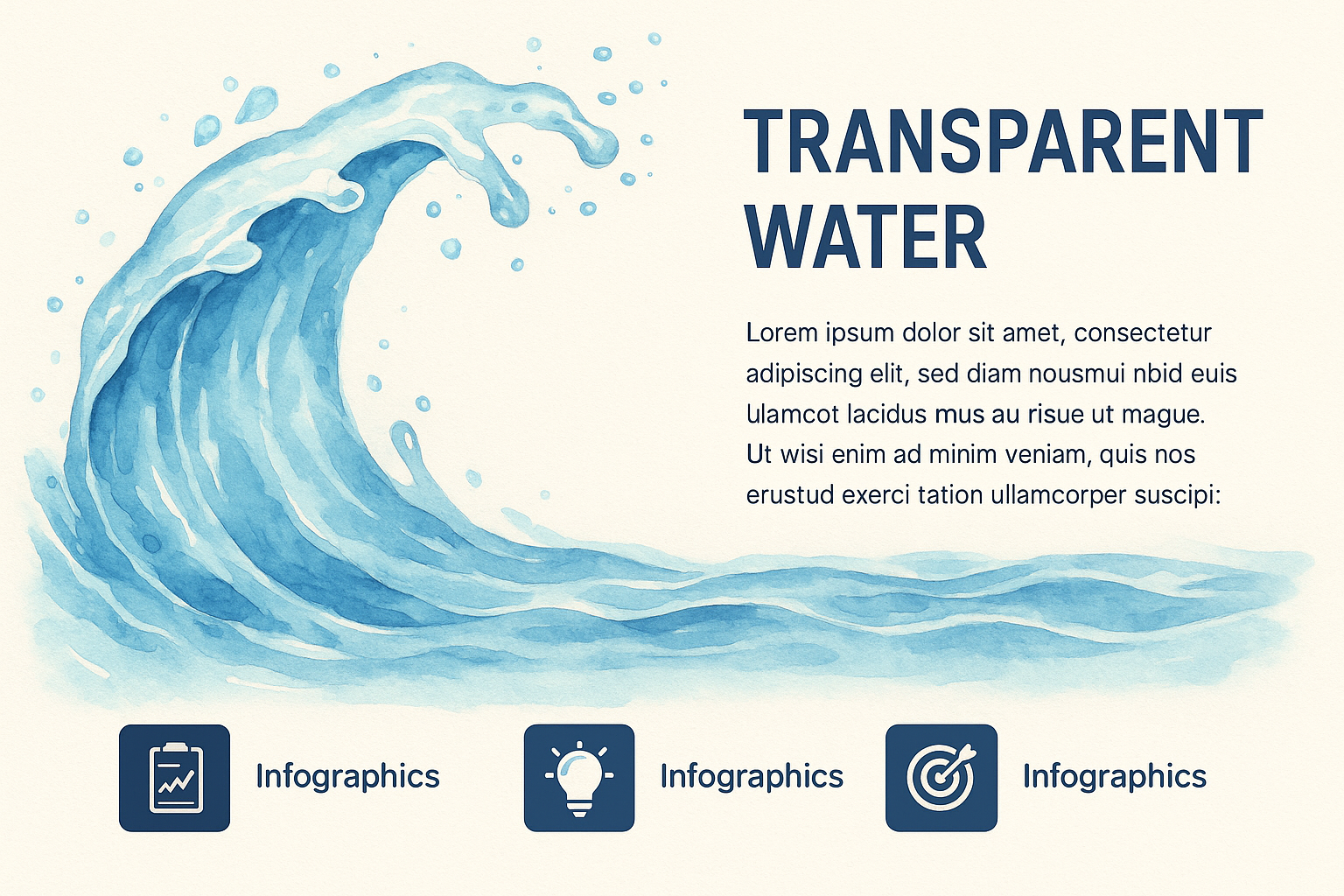 /Collection: /by davooda/Type: PNG/A watercolor-style infographic illustration featuring a dynamic wave design, suitable for presentations or educational content about water. Ideal for environmental topics.