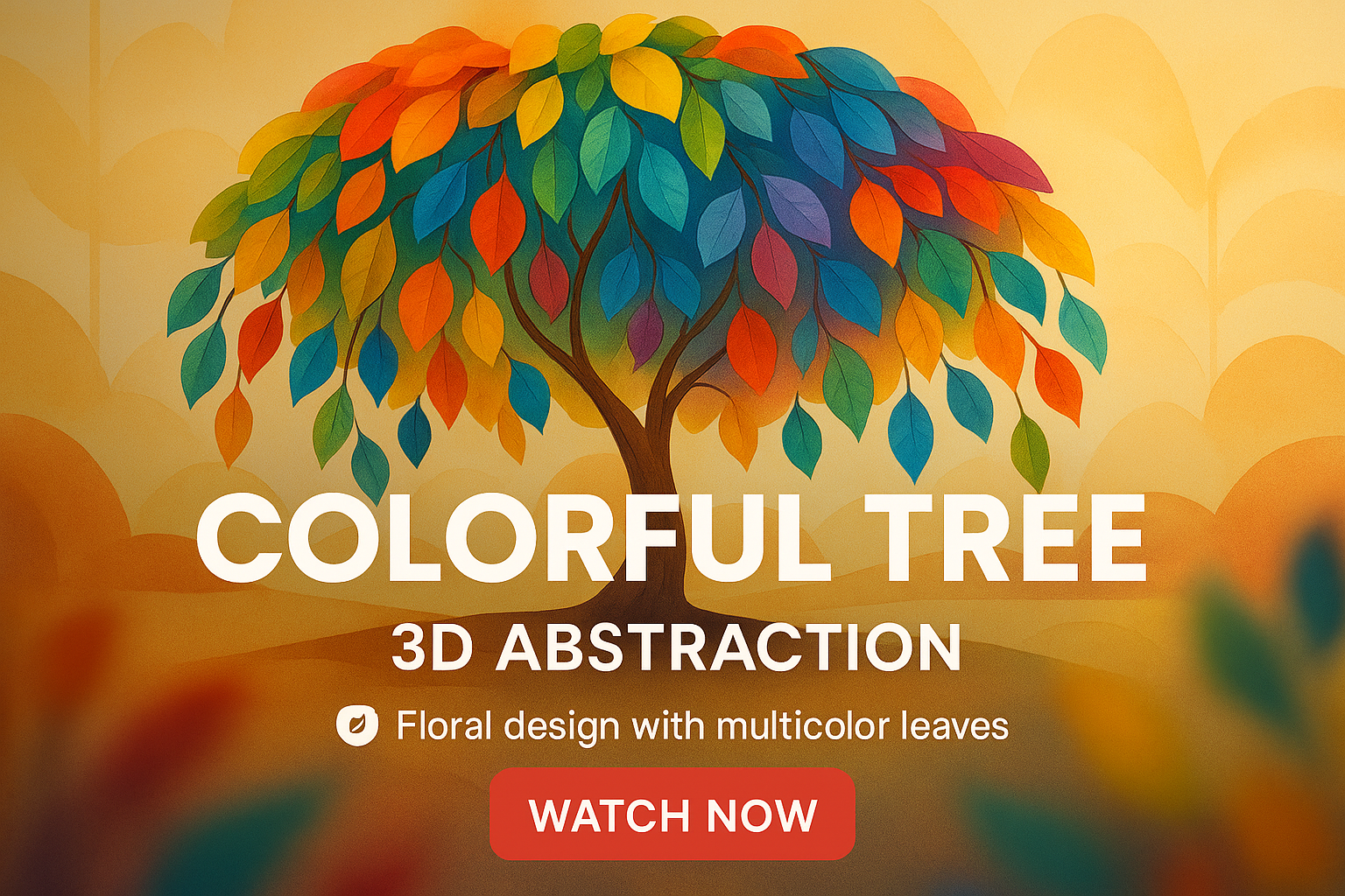Colorful Tree with Multicolor Leaves in Abstract Design