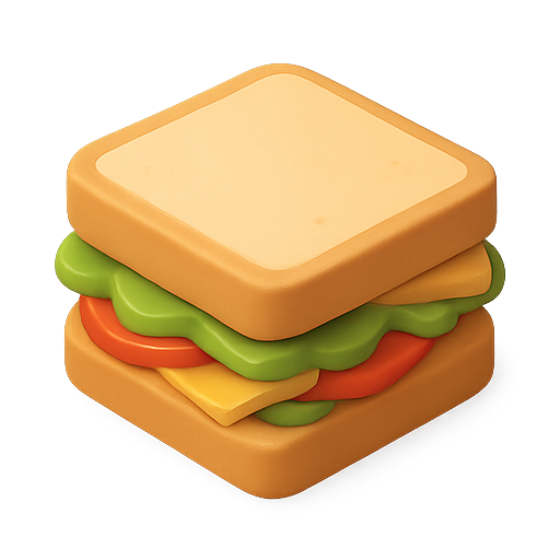 A vibrant 3D illustration of a sandwich featuring layered ingredients like lettuce, tomato, and cheese, suitable for food-related graphics or applications.