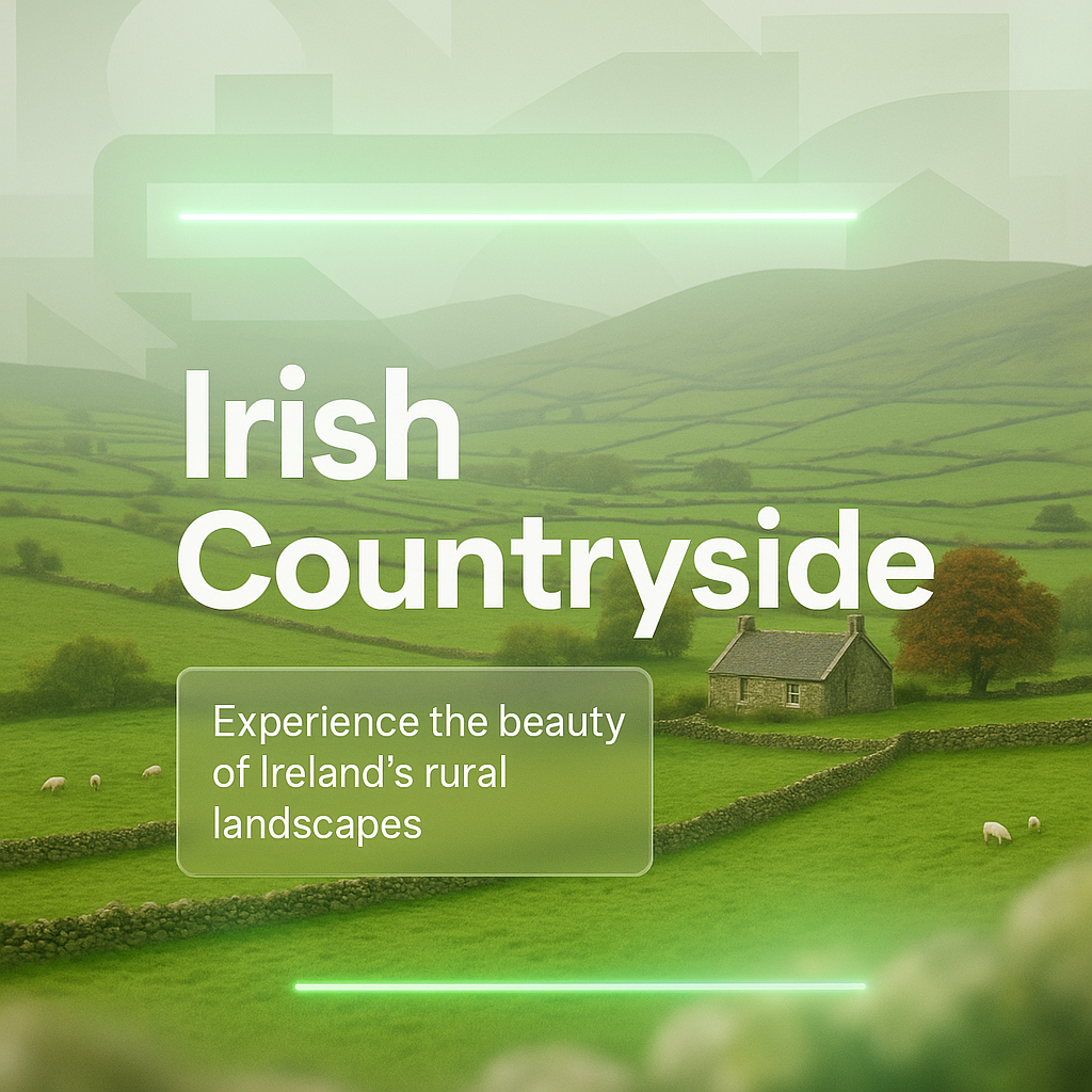 /Collection: /by davooda/Type: PNG/A tranquil graphic showcasing the lush Irish countryside, highlighting the natural beauty and rural charm of Ireland. Ideal for travel promotions or nature-themed content.