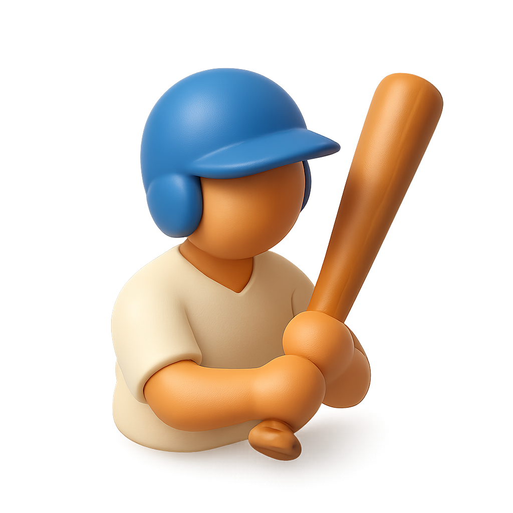/Collection: /by davooda/Type: PNG/A 3D icon of a batter in a three-quarter view, featuring a blue helmet and a wooden bat. The design has a volumetric feel with a transparent background, showcasing an isometric perspective.