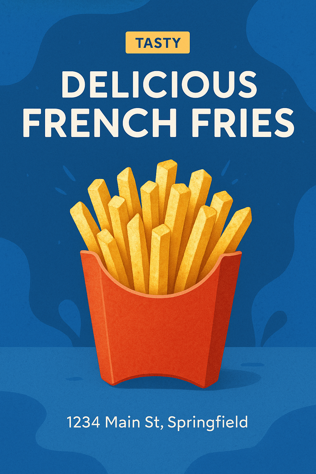 /Collection: /by davooda/Type: PNG/Colorful food graphic depicting a box of delicious French fries, ideal for restaurant marketing or menu design. The modern style and vivid colors attract food lovers.