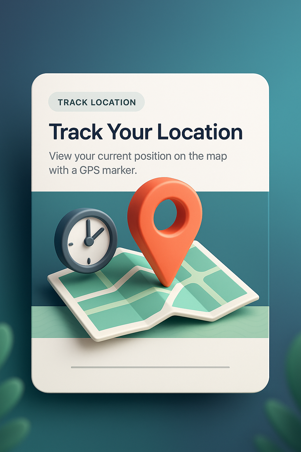 /Collection: /by davooda/Type: PNG/A visually appealing 3D illustration featuring a GPS marker, clock, and a map. The design highlights location tracking and communication features in a modern layout.