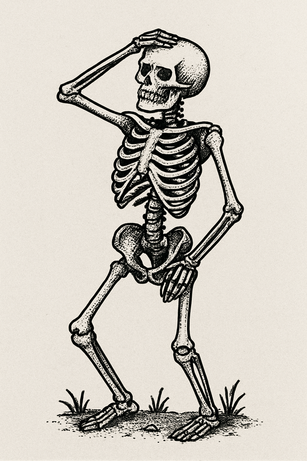 Detailed Illustration of a Skeleton in a Thoughtful Pose