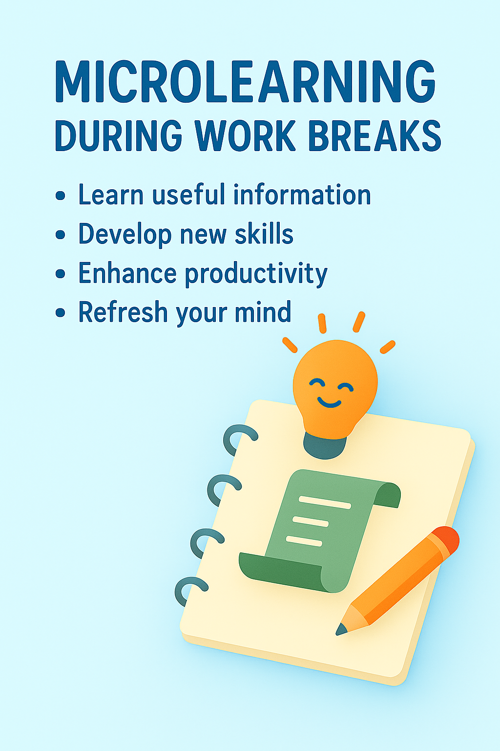 /Collection: /by davooda/Type: PNG/Illustrative graphic promoting microlearning techniques during work breaks, featuring vibrant colors and playful design elements aimed at enhancing productivity and learning.