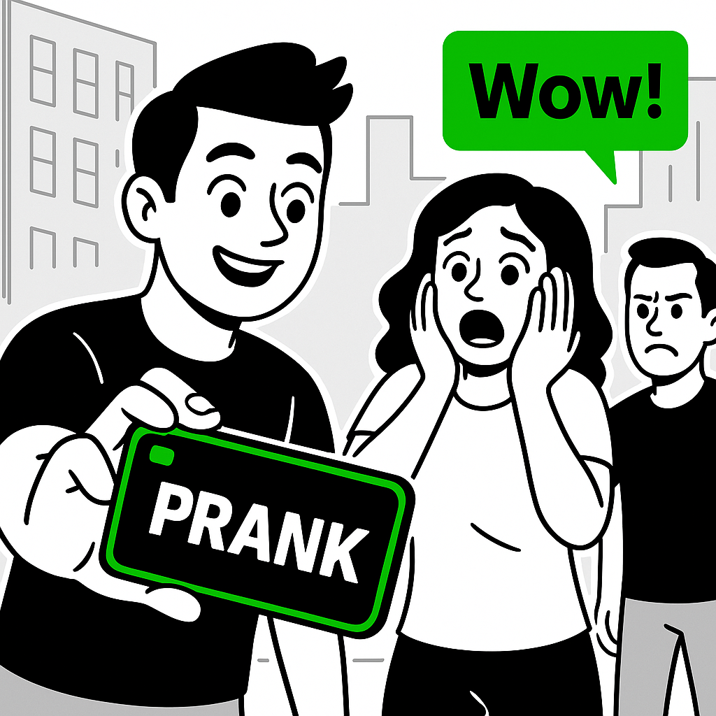 A humorous comic-style illustration depicting a prank being played. The design features expressive characters and a playful aesthetic, ideal for social media or entertainment content.
