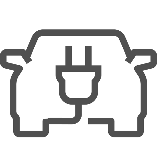 outline simple icon: electric car, electric mobility, electric vehicle, ev charging, renewable energy