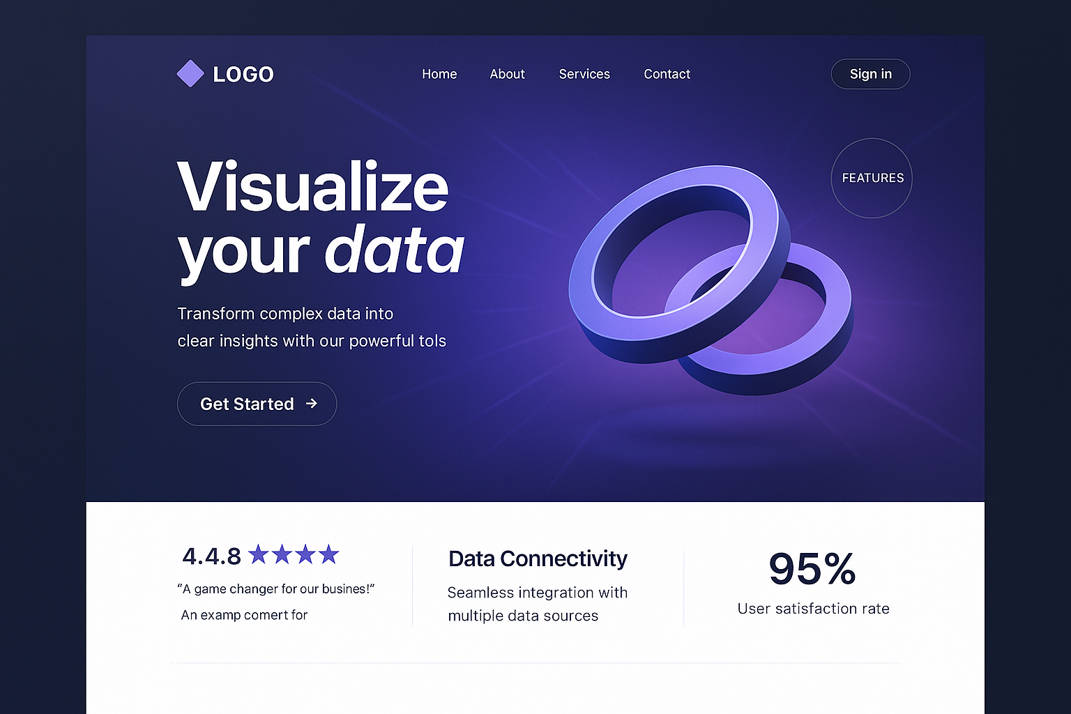 A visually engaging landing page featuring a 3D illustration, gradient background, and interactive elements. Highlights data insights with clear typography.