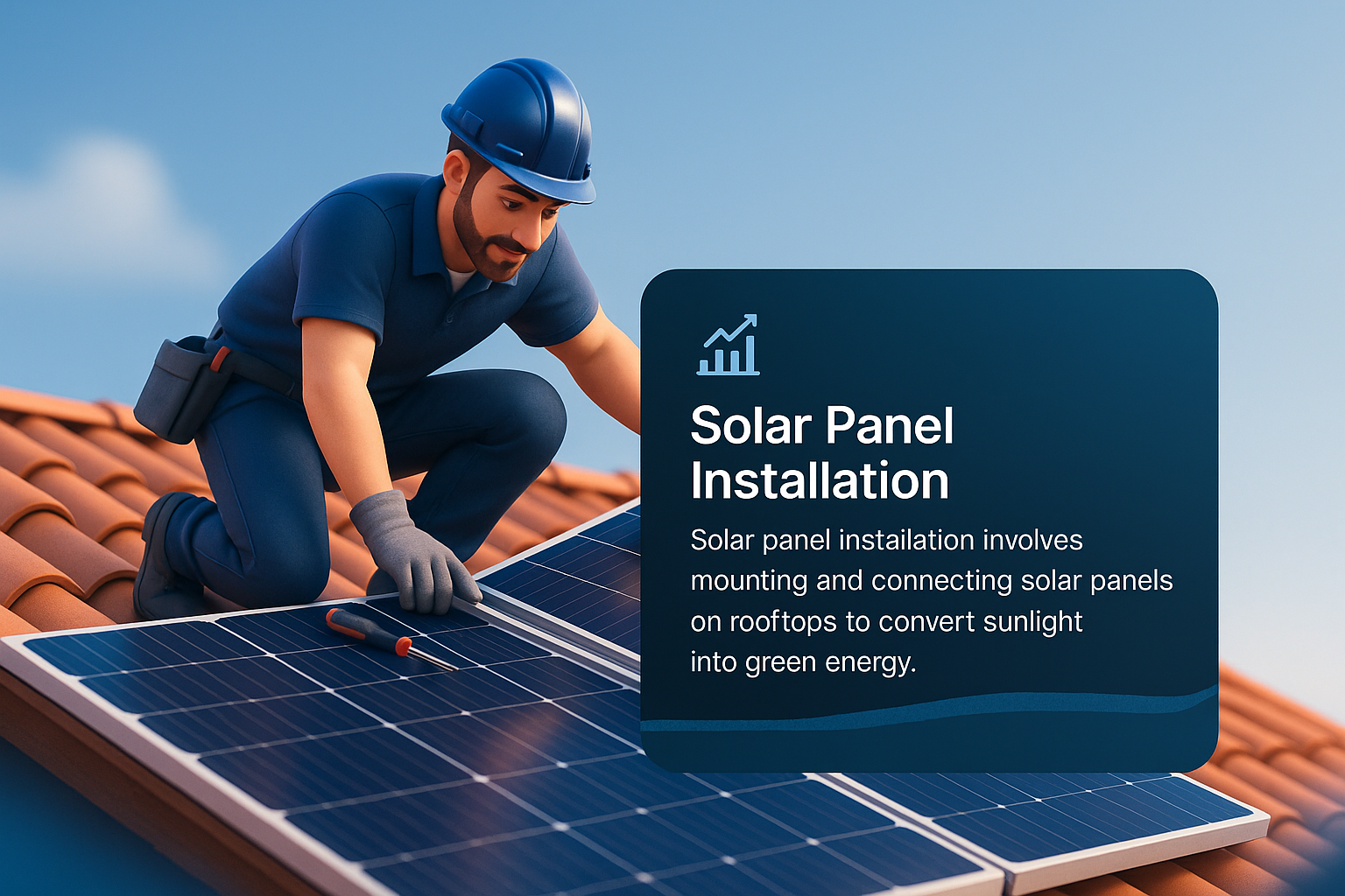 Handyman Installing Solar Panels on Rooftop - Renewable Energy Concept