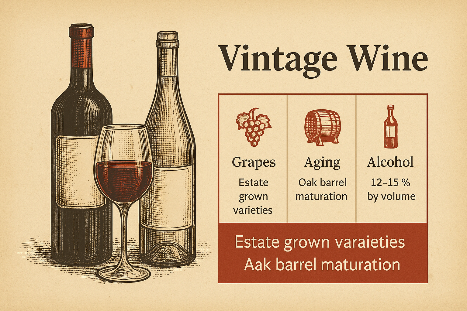 /Collection: /by davooda/Type: PNG/Illustrative infographic showcasing vintage wine details, featuring classic design elements and a warm color palette, ideal for wine enthusiasts and educational purposes.