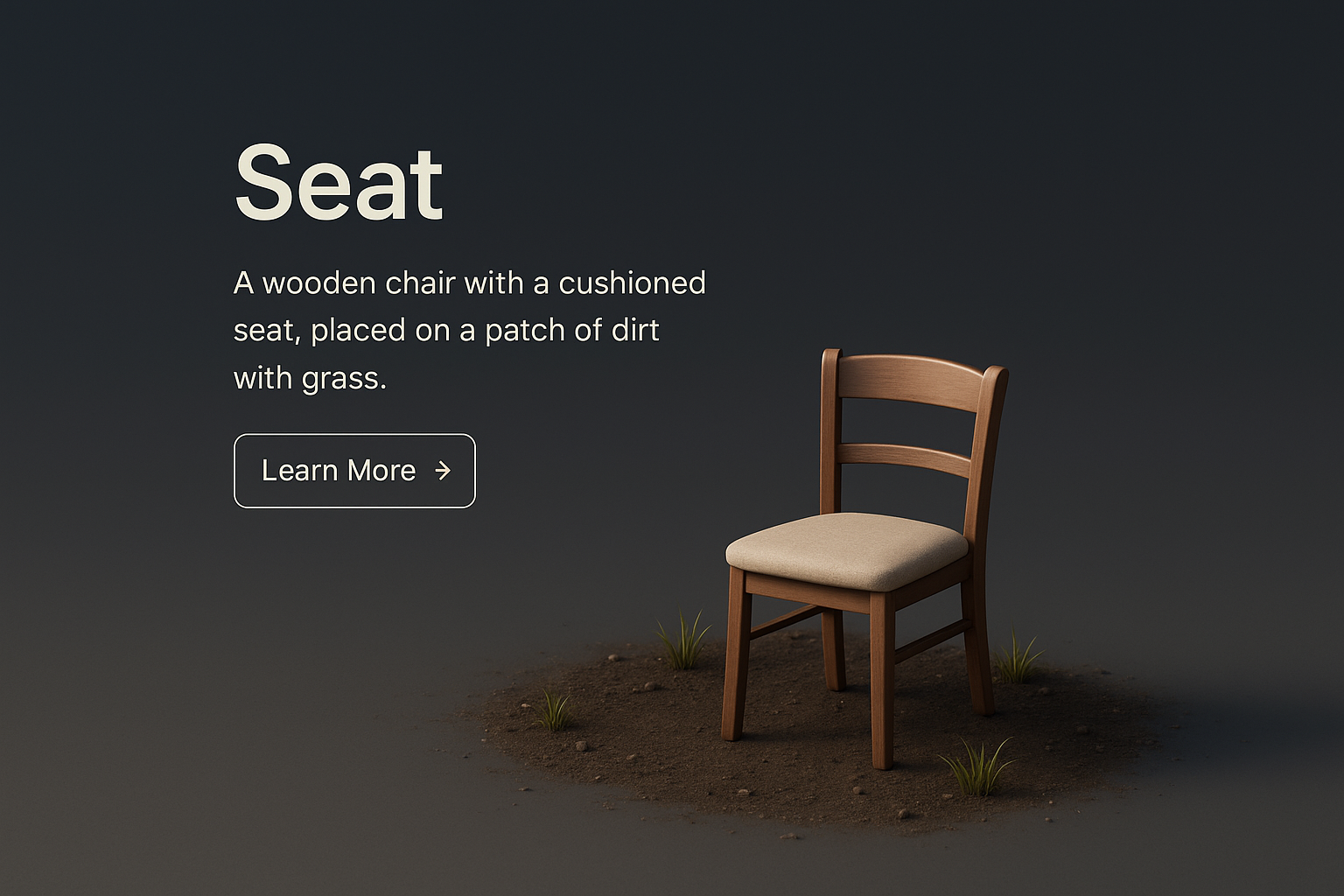 /Collection: /by davooda/Type: PNG/A detailed 3D rendering of a wooden chair with a cushioned seat, set on a dirt patch with grass. The dark background enhances the chair's realism, creating a visually appealing composition.