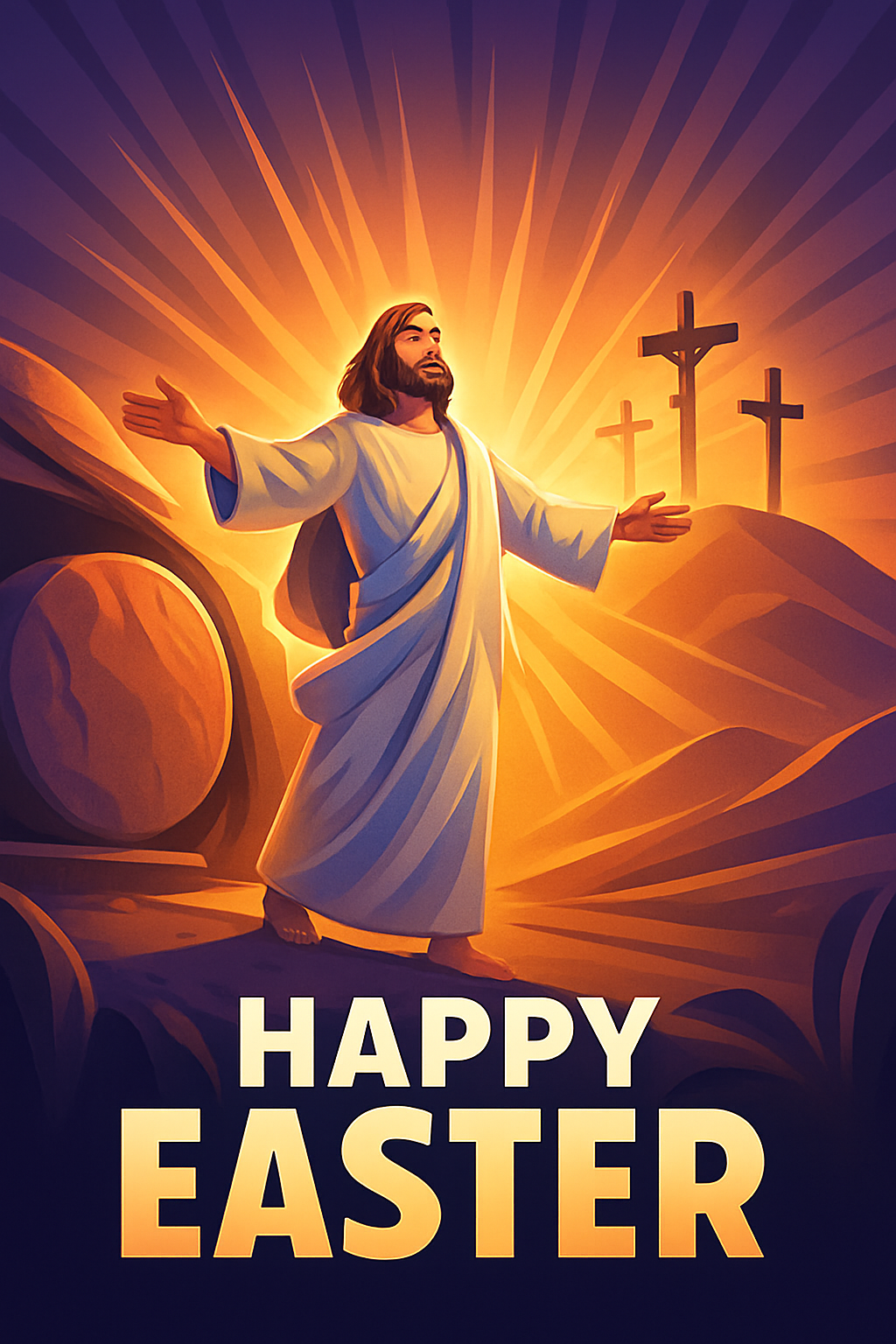 Dynamic Easter Scene with Jesus Rising from the Tomb