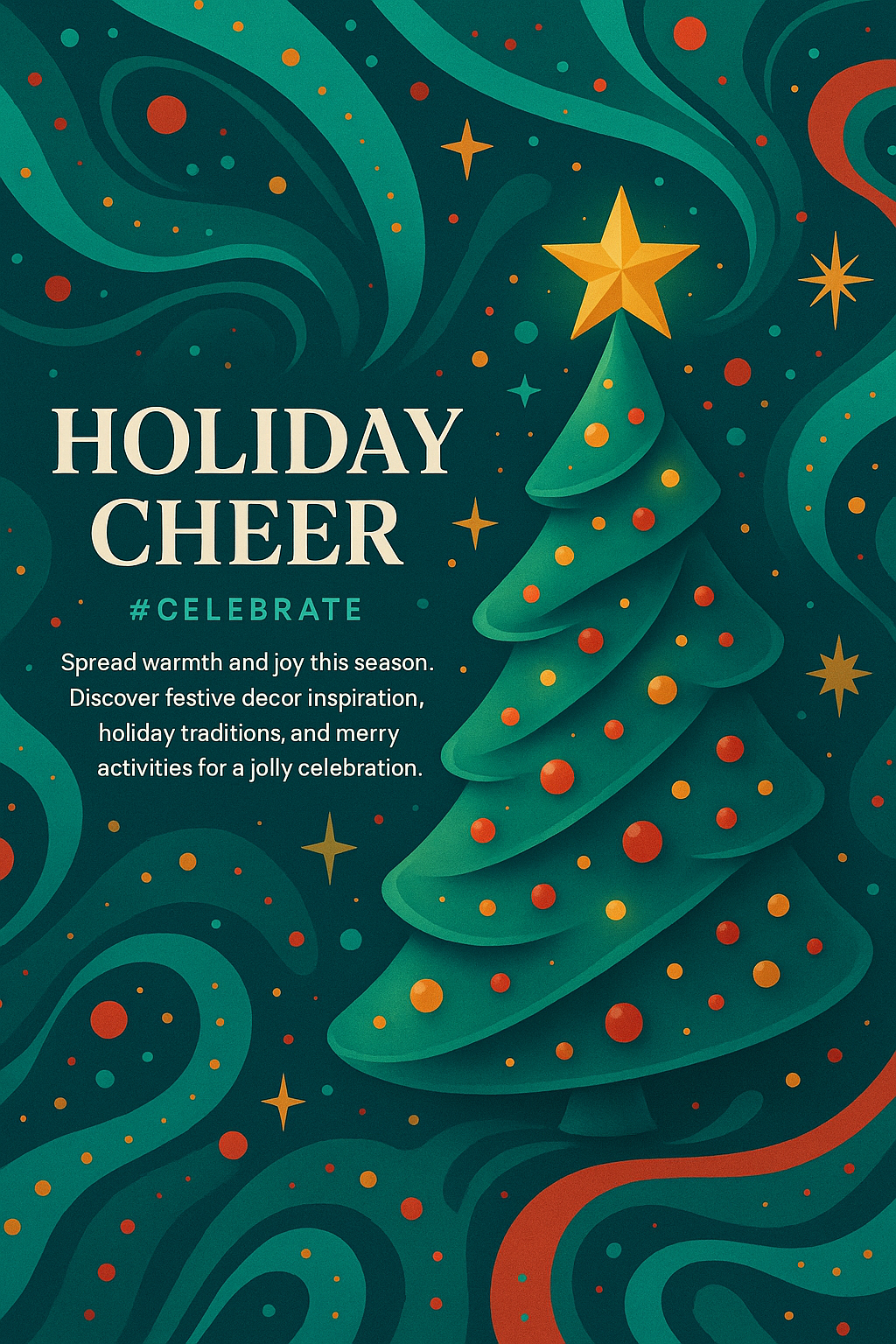 Festive Holiday Cheer Graphic with Tree and Decorations