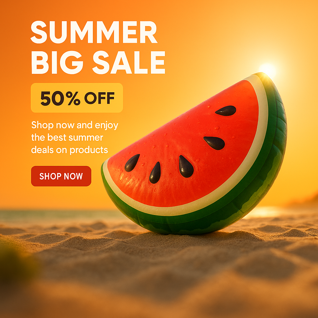 Summer Big Sale with Watermelon Design and 50% Off Promotion