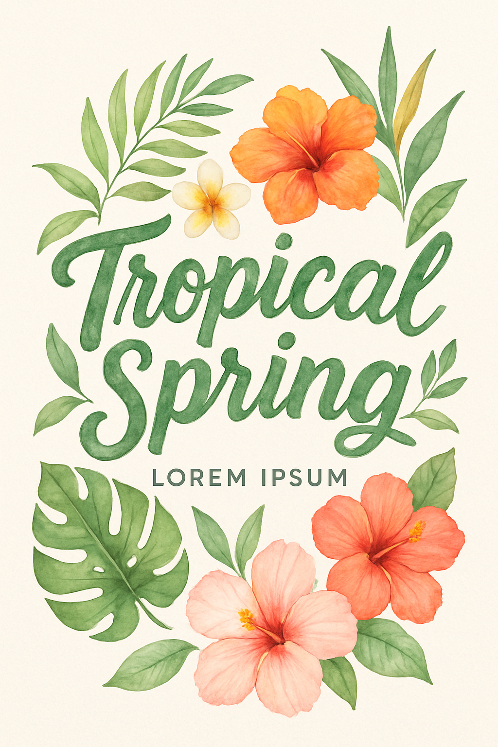 A colorful tropical spring-themed illustration featuring lush flowers and greenery, ideal for seasonal promotions and botanical-related content.
