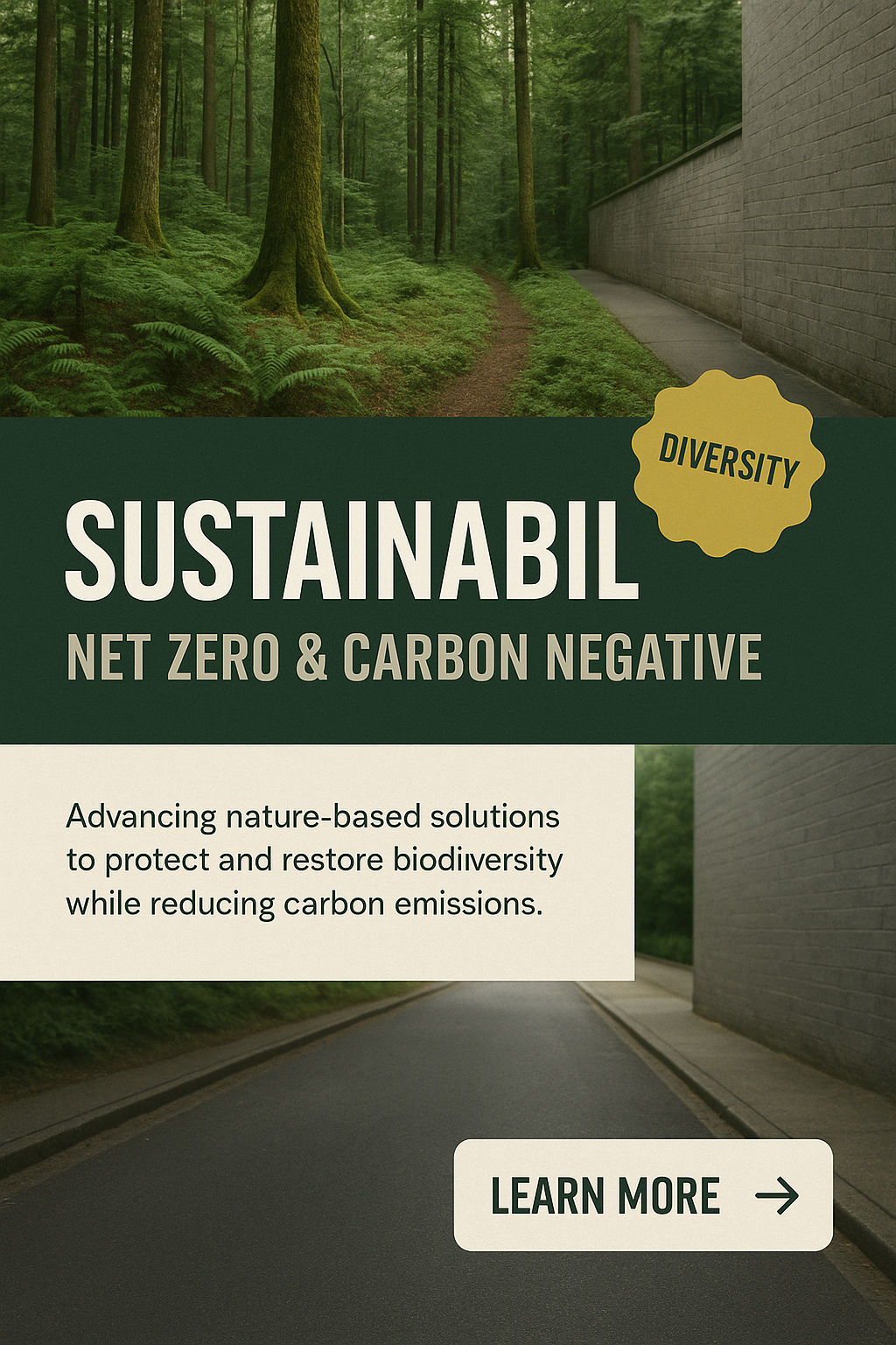 /Collection: /by davooda/Type: PNG/A visually engaging design featuring a lush forest and urban elements, promoting biodiversity and carbon-negative solutions. Includes clear text hierarchy and vibrant colors.