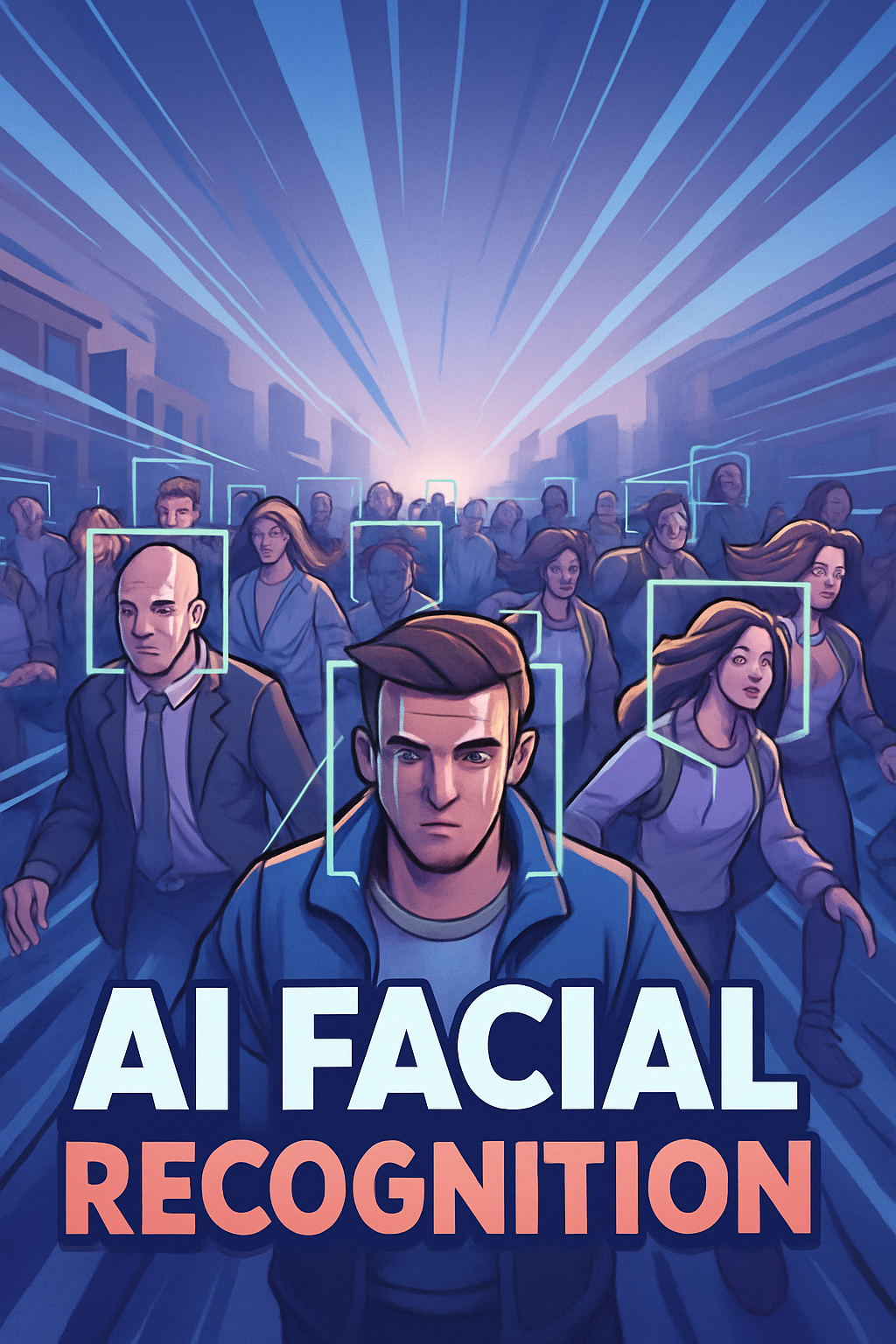 /Collection: /by davooda/Type: PNG/A vibrant, AI-generated illustration depicting a crowd on a street with facial recognition overlays. The dynamic composition features a gradient background and engaging visual elements.