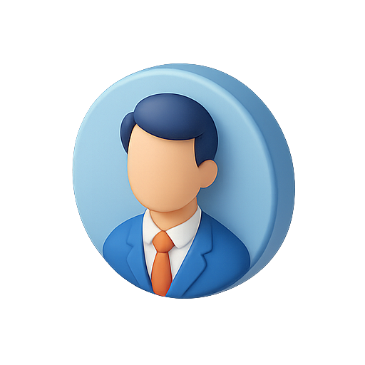Stylized 3D icon representing a business professional, featuring a faceless character in a suit and tie. Ideal for use in digital applications, user profiles, and corporate branding.