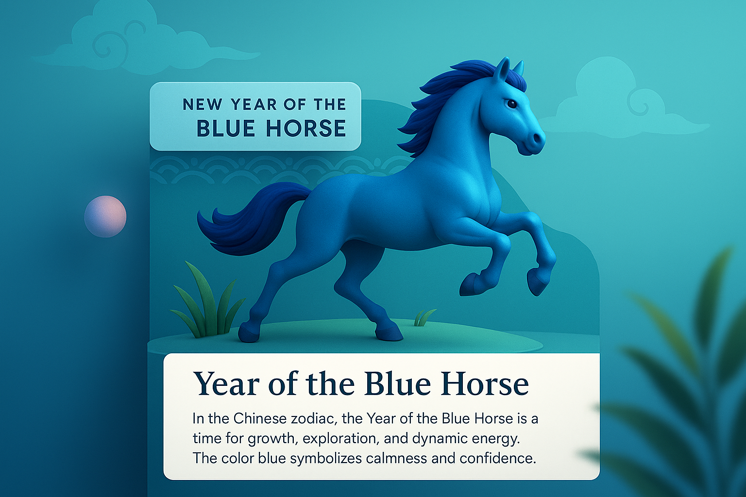 3D Design of Blue Horse New Year Themed Testimonial Block