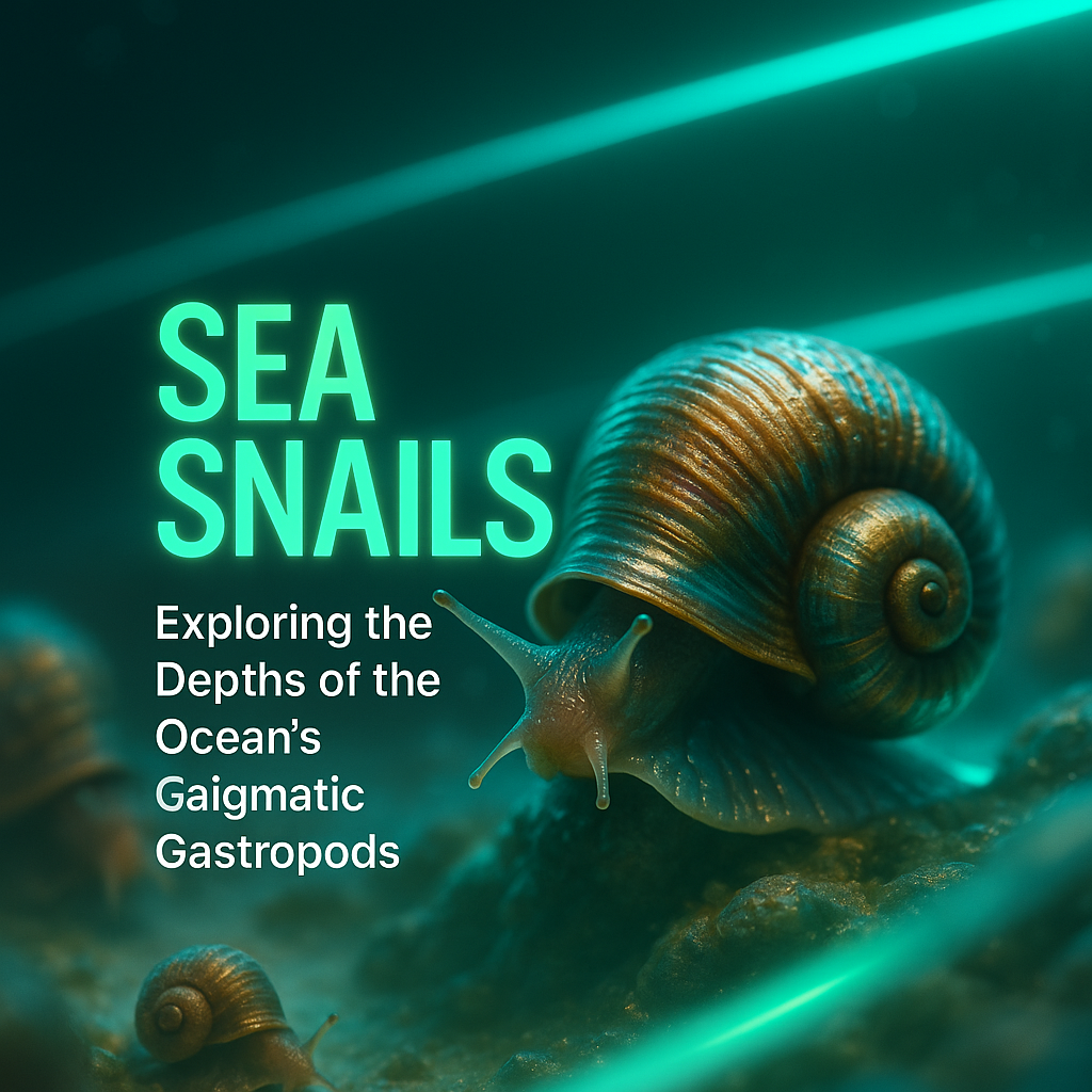 A visually striking design featuring sea snails, highlighted with neon accents and a foggy backdrop. The layered composition includes engaging text and vibrant colors.