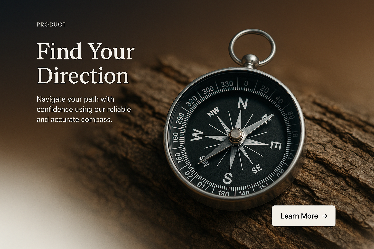 A stylish, realistic compass icon set against a gradient background, designed for a web page layout. Features a clear call-to-action button, ensuring readability and aesthetic appeal.