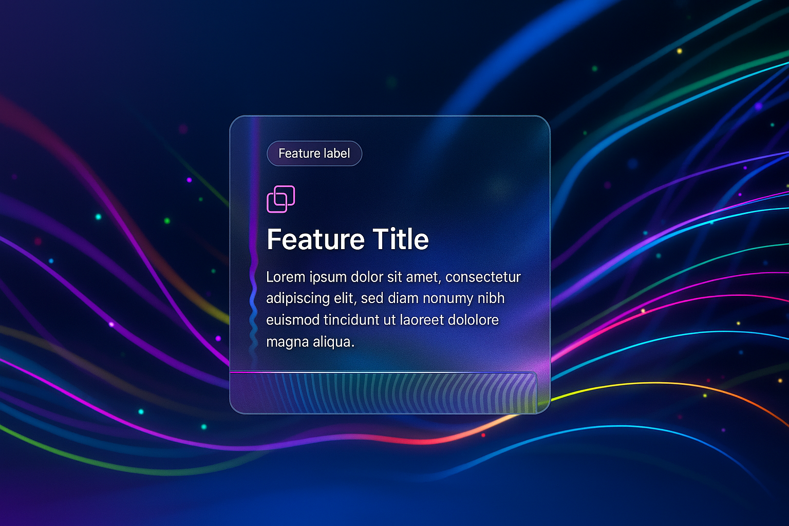 /Collection: /by davooda/Type: PNG/An abstract visualization featuring colorful lines and dots against a dark background, illustrating the concept of quantum waves. The design includes a transparent 3D block with a feature label and title.
