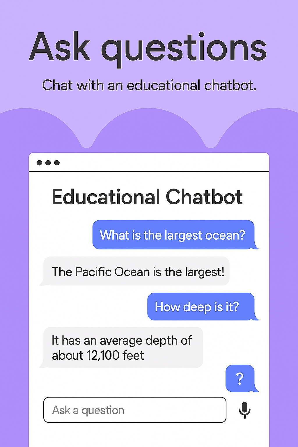 Modern educational chatbot interface showcasing a conversation format, ideal for interactive learning and user engagement in digital platforms.