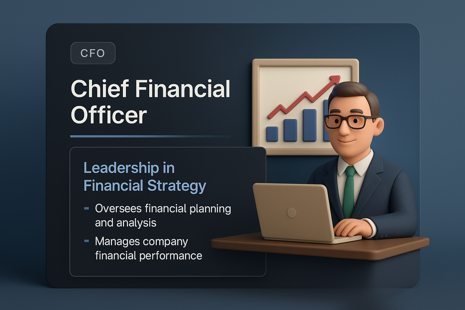 /Collection: /by davooda/Type: PNG/A 3D illustration depicting a Chief Financial Officer at a desk, engaging with financial data. The background features a gradient and a subtle chart, enhancing the professional theme.