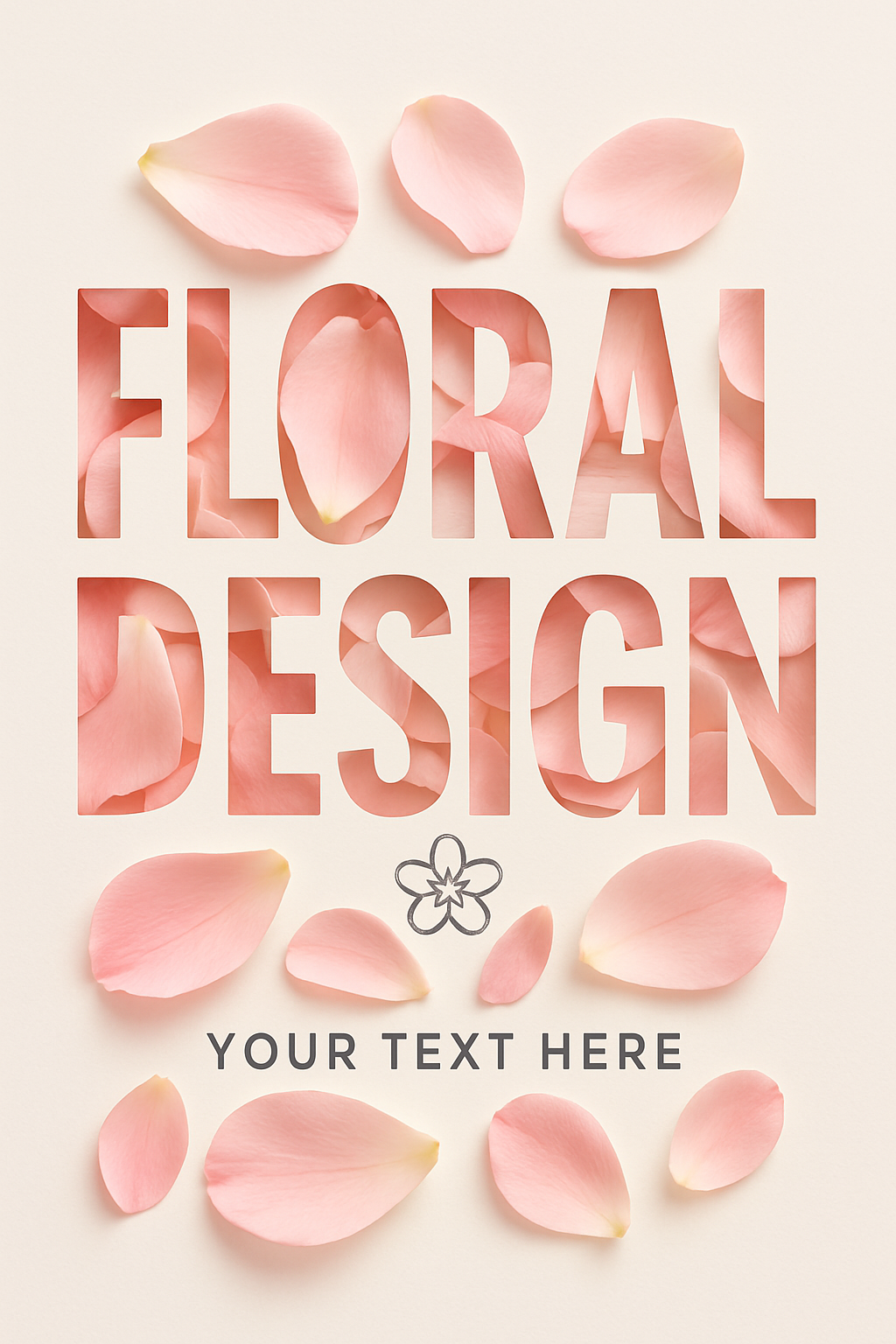 Elegant promotional graphic featuring floral design with pink petals arranged artistically around a bold text cutout. Ideal for marketing floral services or products.