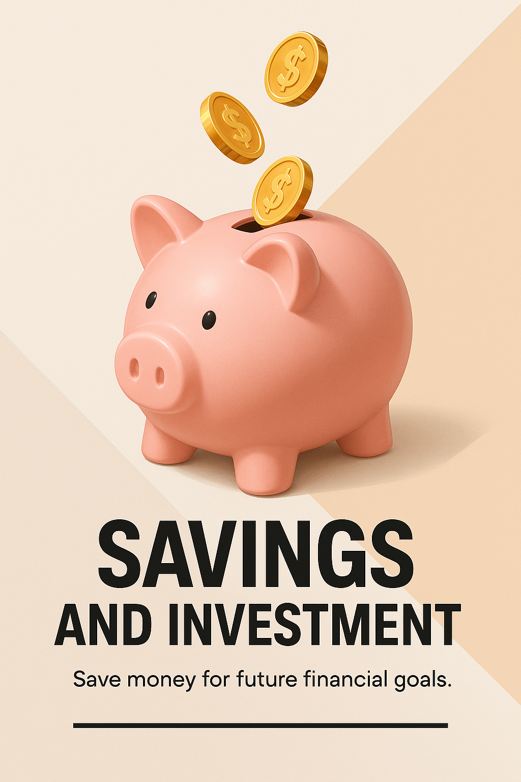 /Collection: /by davooda/Type: PNG/A modern piggy bank with coins falling into it, symbolizing savings and investment. The background features contrasting light colors, enhancing the focus on the piggy bank.