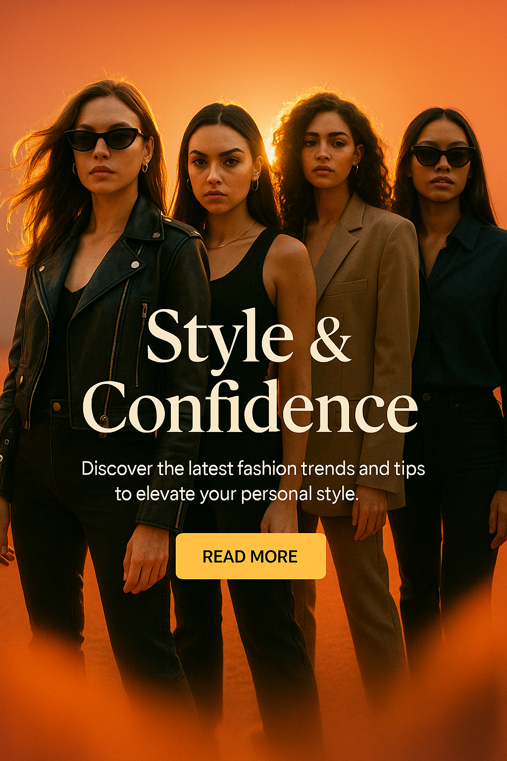 A stylish promotional image featuring four women in fashionable outfits, designed for social media to highlight current fashion trends and tips.