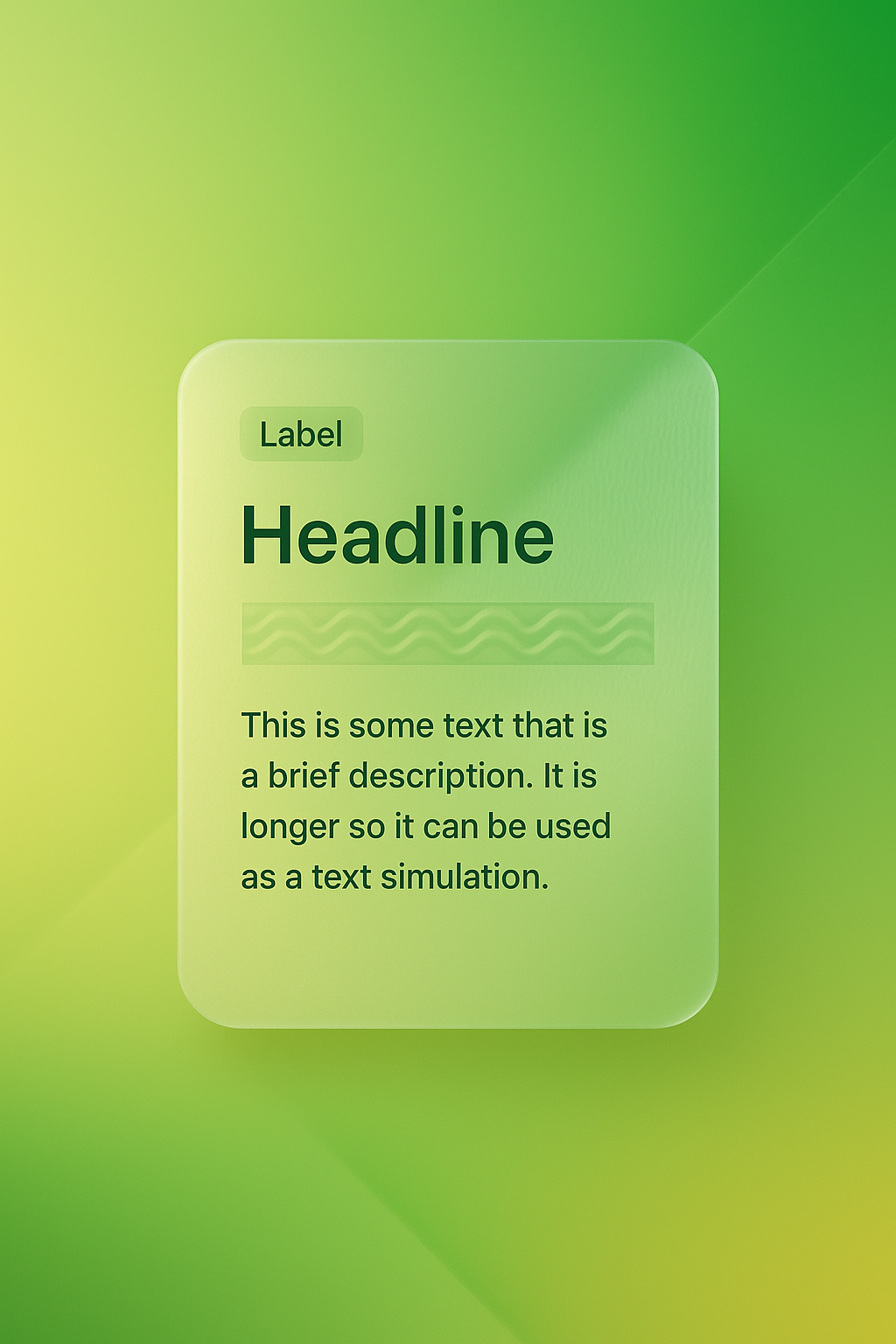 An abstract 3D design featuring a green gradient background with a translucent glass-like text block. The layout includes a headline, descriptive text, and a label, seamlessly integrated into the composition.