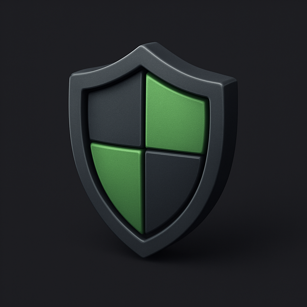 Detailed 3D Shield Icon in Black, Gray, and Green