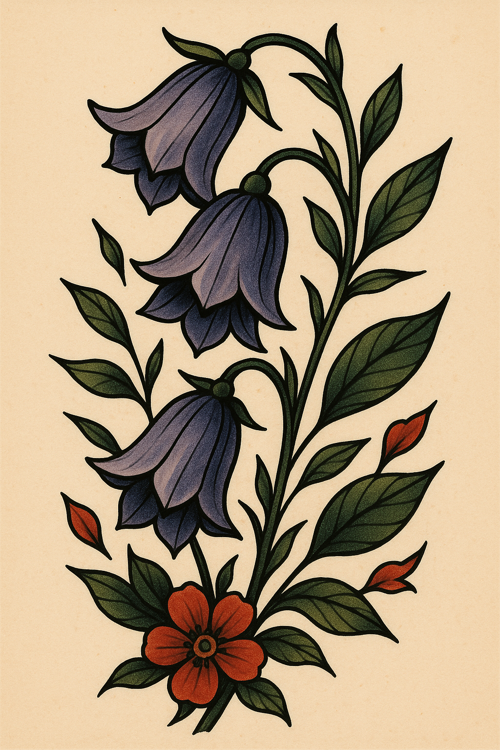 Colorful Floral Illustration Featuring Bell Flowers and Leaves