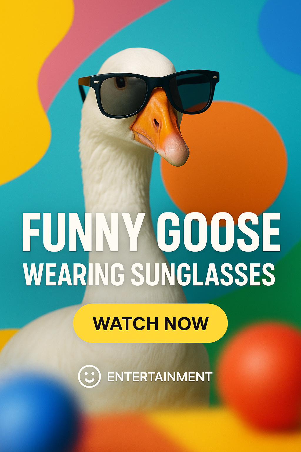 Vibrant and playful image of a goose wearing sunglasses, set against a colorful abstract background. Ideal for entertainment promotions or social media posts.