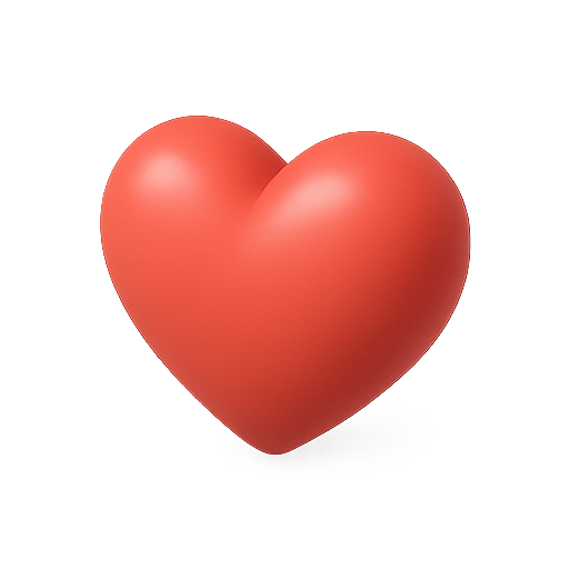 A stylized 3D heart icon featuring a smooth surface and vibrant red color, ideal for use in love-themed graphics, social media posts, and emotional branding.