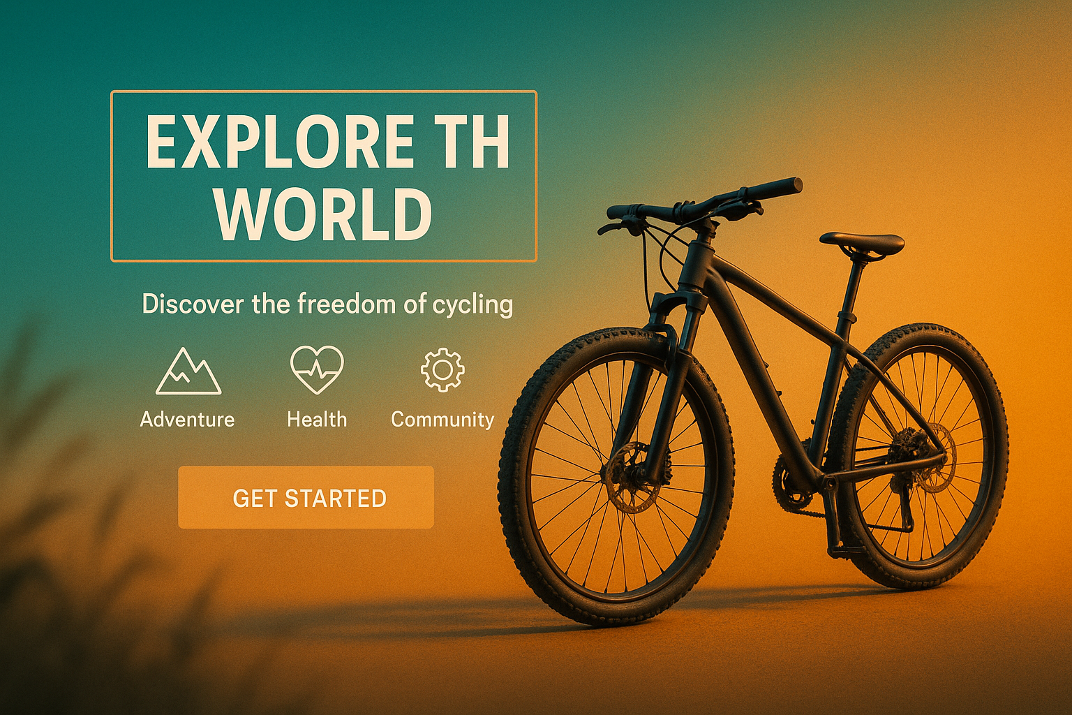 /Collection: /by davooda/Type: PNG/This vibrant promotional graphic features a mountain bike against a gradient background, emphasizing themes of adventure, health, and community. Ideal for cycling brands or fitness campaigns.