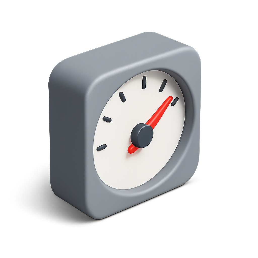 /Collection: /by davooda/Type: PNG/A modern 3D gauge icon featuring a needle and a smooth, rounded design. The icon has a transparent background and is depicted from a three-quarter isometric perspective.