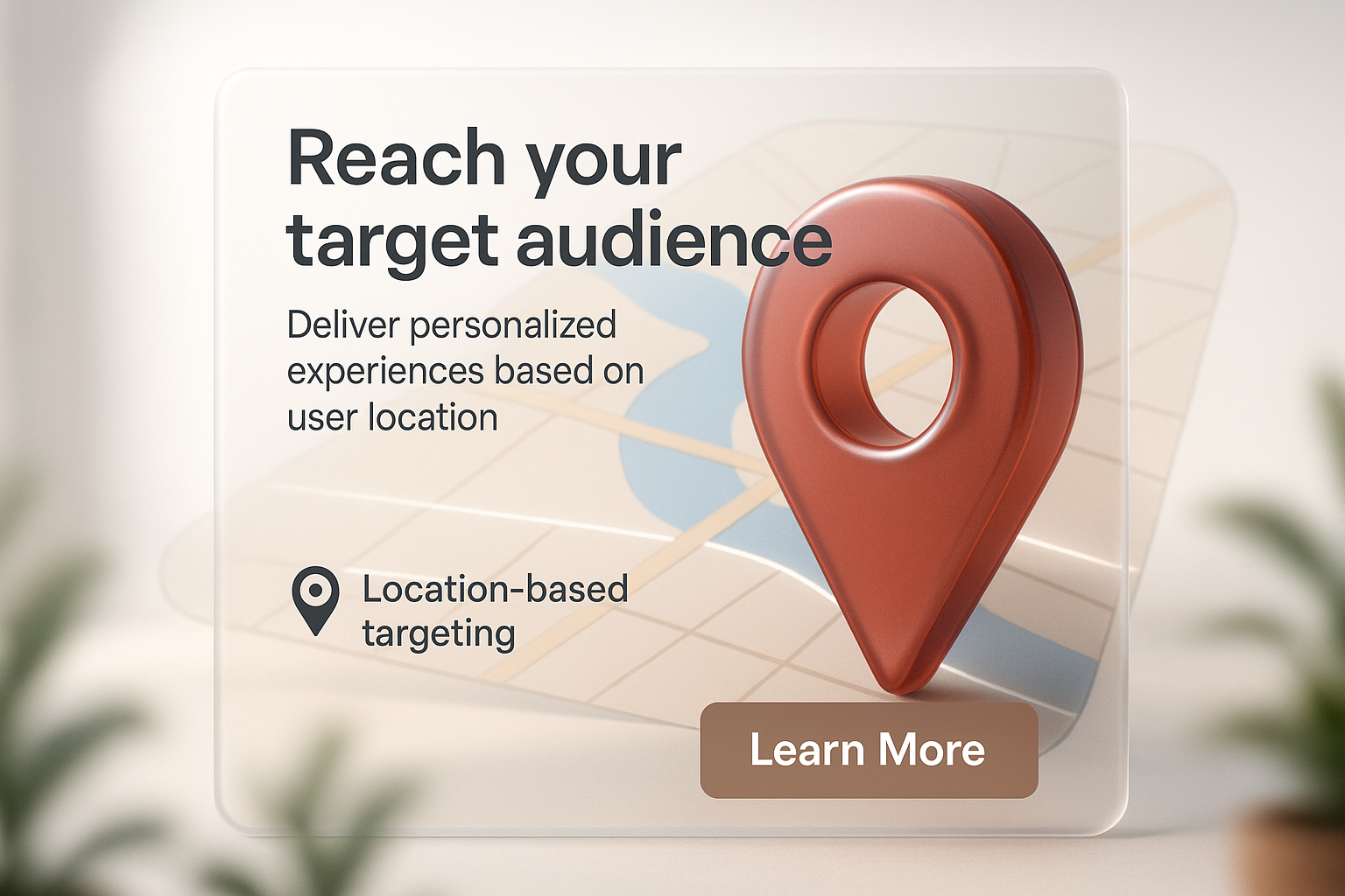 Modern promotional banner featuring a 3D location pin icon, emphasizing location-based audience targeting. Ideal for digital marketing campaigns.