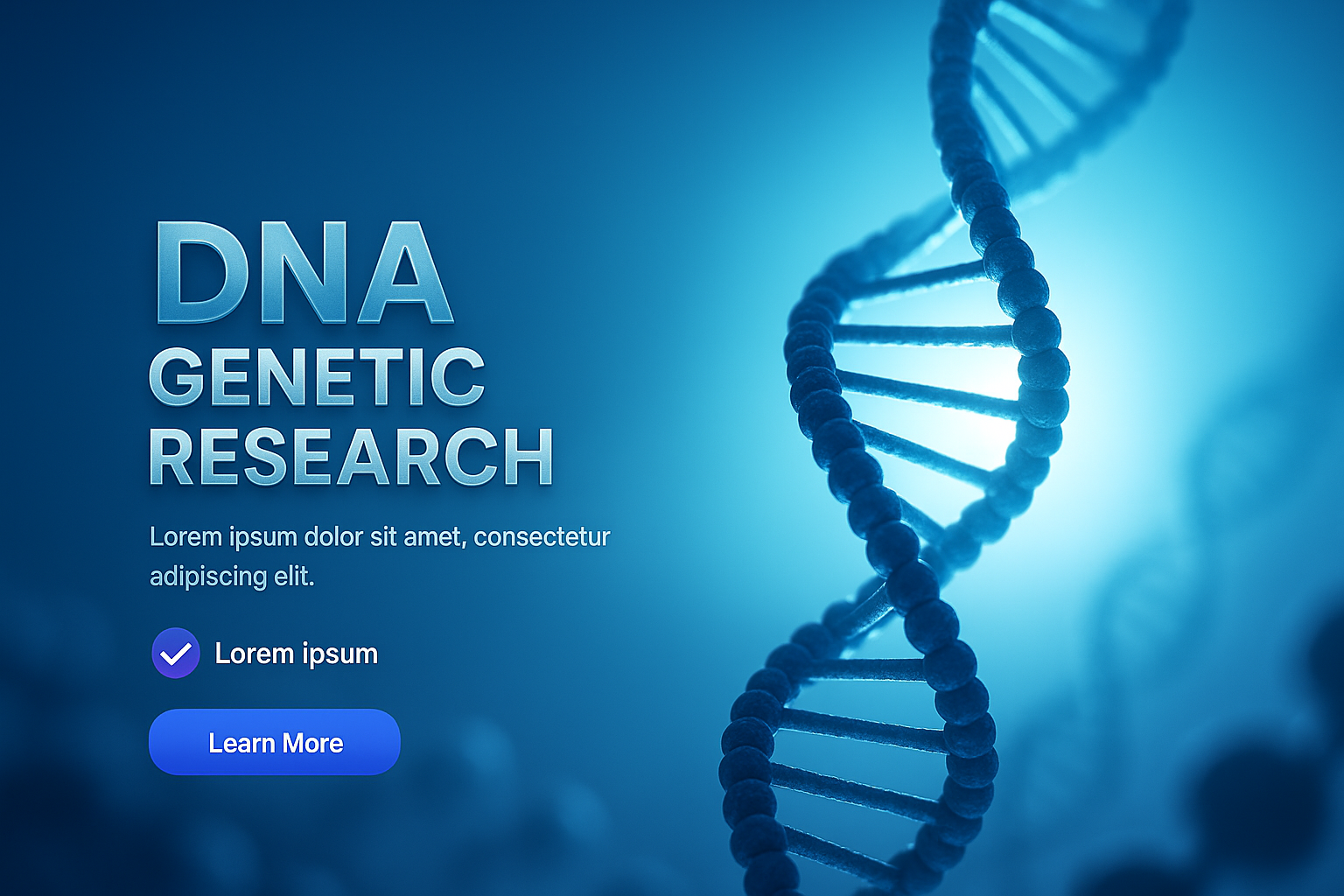 /Collection: /by davooda/Type: PNG/A digital graphic showcasing a DNA double helix, designed for educational or promotional purposes in genetic research. The blue tones and modern font enhance its scientific appeal.