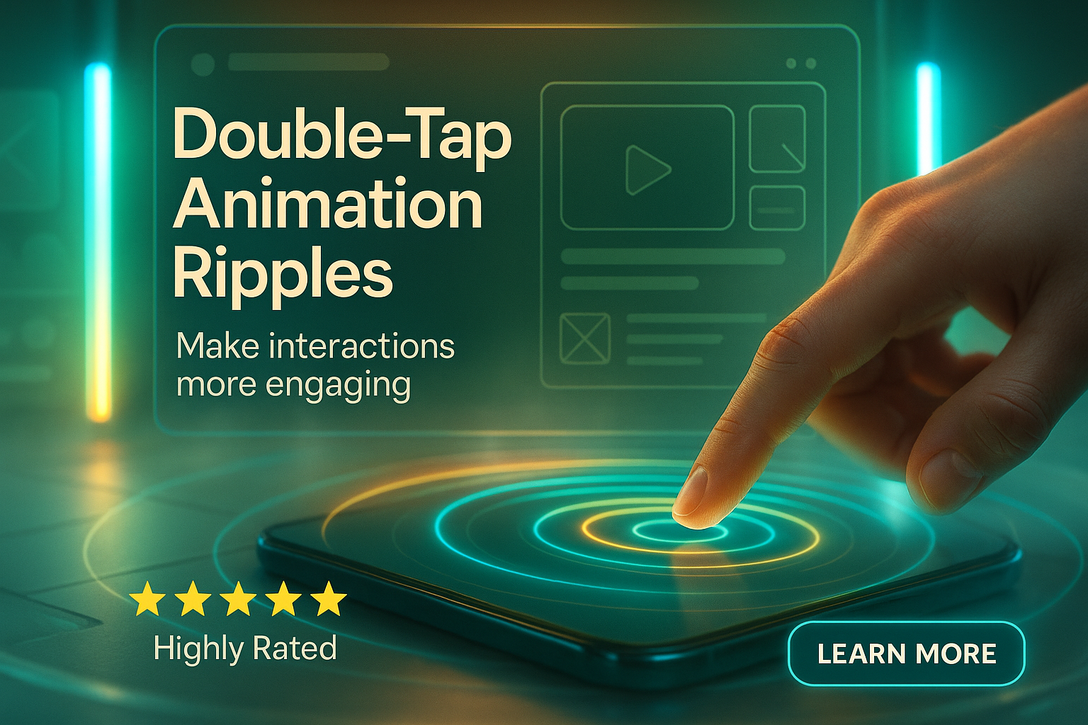 Modern promotional banner showcasing double-tap animation effects on a mobile device, designed for digital marketing and app promotion.