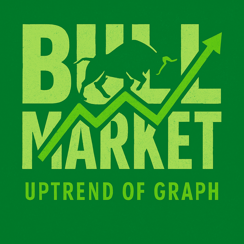 Bull Market Graphic with Trend Indicators and Bold Typography